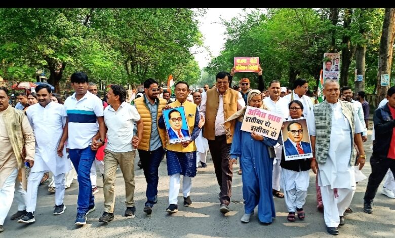 अंबेडकर चौक से कलेक्ट्रेट तक कांग्रेस ने निकाला मार्च : गृह मंत्री अमित शाह को बर्खास्त किए जाने राष्ट्रपति के नाम सौंपा ज्ञापन