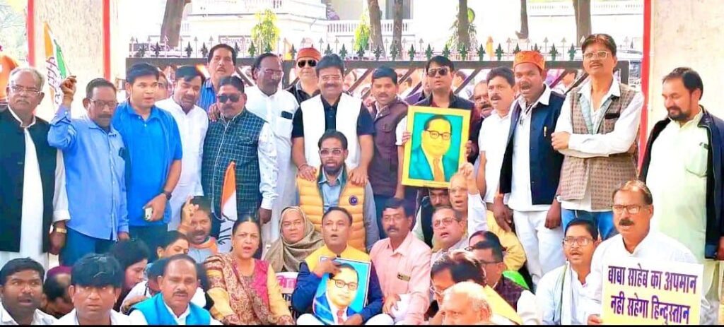 बिलासपुर/प्रदेश कांग्रेस कमेटी के अध्यक्ष दीपक बैज के निर्देश पर जिला कांग्रेस कमेटी ( शहर/ग्रामीण ) द्वारा 24 दिसम्बर को अम्बेडकर चौक से नेहरू चौक तक मार्च निकाला गया , फिर कांग्रेसजन कलेक्ट्रेट पहुंच कर ज़िला कलेक्टर द्वारा नियुक्त अधिकारी डिप्टी कलेक्टर को ” महामहिम राष्ट्रपति ” के नाम ज्ञापन सौंपा गया और कांग्रेस ने ज्ञापन के माध्यम से महामहिम राष्ट्रपति से मांग की कि केंद्रीय मंत्रिमंडल से अमित शाह को बर्खास्त किए जाने की मांग की।लगभग 12.30 बजे कांग्रेसजन अम्बेडकर जी की प्रतिमा पर माल्यार्पण करने के पश्चात अमित शाह इस्तीफा दो ,बाबा अम्बेडकर जिंदाबाद ,अम्बेडकर का अपमान -नही सहेगा हिंदुस्तान, संविधान बचेगा – देश बचेगा, संविधान विरोधी — भाजपा को हटाना है ,जैसे