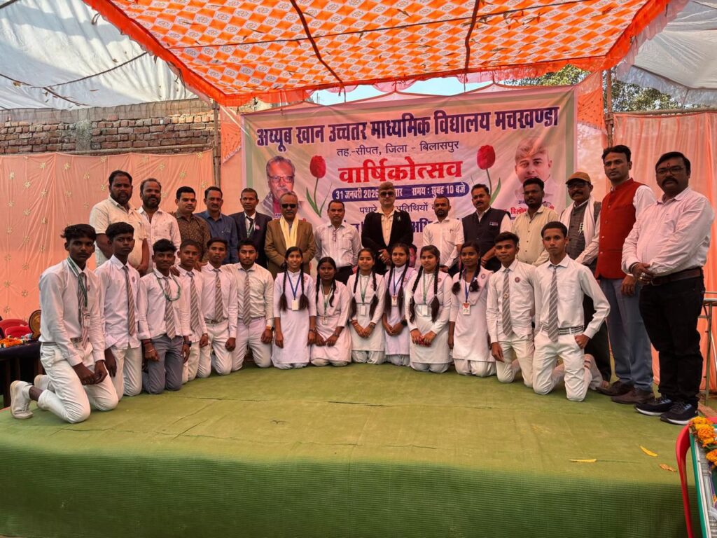 बिलासपुर। स्कूल डेज किसी भी व्यक्ति के स्कूल लाइफ स्कूल का जीवन उसके जीवन का स्वर्णिम पल होता है, और व्यक्ति कितना भी आगे बढ़ जाए यह चाहता है, की स्कूल के समय फिर से वापस आ जाए, मैं इस विद्यालय में अध्यनरत समस्त, छात्र छात्राओं से अनुरोध करूंगा अपने समय के स्वर्णिम पाल का सदुपयोग करें जीवन में पढ़े कुछ नए कीर्तिमानगढ़ हैं, और अपना अपने विद्यालय का अपने गुरुजनों का माता-पिता का इस क्षेत्र का नाम रोशन करें, यह बातें बिलासपुर जिले के लोकप्रिय कांग्रेस नेता श्री त्रिलोक चंद श्रीवास ने आज मस्तूरी विधानसभा क्षेत्र के ग्राम मछखंडi स्थित अयूब खान उच्चतर माध्यमिक विद्यालय के वार्षिक उत्सव के दौरान उपस्थित छात्र-छात्राओं एवं ग्रामीण जनों को संबोधित करते हुए व्यक्त किये। इस अवसर पर कार्यक्रम को देश के ख्याति प्राप्त कवि मीर अली मीर, शाला के संचालक इदरीस खान, जनपद सदस्य विजय गुप्ता, ग्राम के सरपंच इंदु सिंह आदि ने भी संबोधित किया। इस अवसर पर विद्यालय परिवार के छात्र-छात्राओं के द्वारा दर्जनों रंगारंग कार्यक्रम की प्रस्तुति दी गई, एवं श्री त्रिलोक श्रीवास सहित अन्य अतिथियों का शाल श्री फल पुष्पगुच्छ से सम्मान किया गया। इस अवसर पर अन्य अतिथियों में ठाकुर पवन सिंह चंद्रप्रकाश केसरवानी लोक प्रकाश दिवाकर शुभम श्रीवास मोहन गुप्ता दुबे जी, धृतलहरे जी आदि जन उपस्थित थे, इस अवसर पर क्षेत्र वासियों जनप्रतिनिधि एवं शाला परिवार के द्वारा श्री त्रिलोक चंद्र श्रीवास के आगमन पर आतिशबाजी पुष्पहार से भव्य स्वागत किया गया।