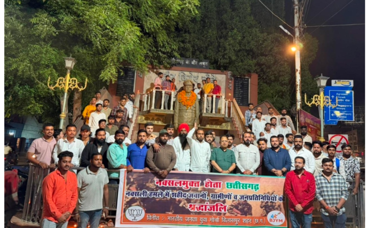 बस्तर नक्सलमुक्त होने पर भाजयुमो ने शहीदों को दी श्रद्धाजलि