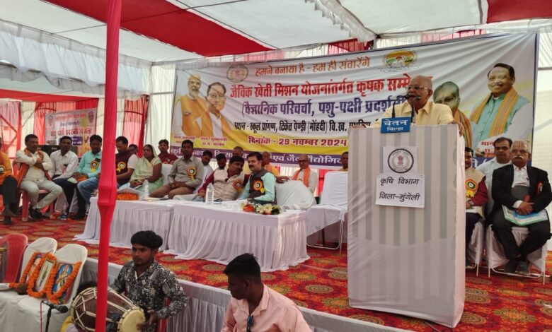 बिलासपुर।पूर्व विधानसभा अध्यक्ष धरमलाल कौशिक ने बिल्हा विधानसभा अंतर्गत ग्राम टिकैत पेंड्री स्थित स्कूल प्रांगण में जैविक खेती मिशन योजना के तहत आयोजित किसान संगोष्ठी, वैज्ञानिक परिचर्चा, पशु प्रदर्शनी और किसान मेला कार्यक्रम में शामिल होकर किसानों की उन्नति एवं जैविक खेती के महत्व पर चर्चा की साथ ही इस आयोजन में कृषि विज्ञान और पशुपालन से जुड़ी नई तकनीकों के बारे में जानकारी साझा की। साथ ही ग्राम ठेलकी में आयोजित भूमिपूजन कार्यक्रम में शामिल हुए । जिसके अंतर्गत श्री कौशिक के करकमलो द्वारा समुदायिक उद्घाटन समारोह, रंगमंच भूमिपूजन एवं सीसी रोड भूमिपूजन किया गया। तत्पश्चात विधानसभा बिल्हा के ग्राम धुमा में सेवा सहकारी समिति धुमा के धान खरीदी केंद्र में धानखरीदी शुभारम्भ में शामिल होकर धान खरीदी केंद्र का निरीक्षण किया एवं किसानों से चर्चा कर साय सरकार की जंकल्याणकारी योजनाओं के बारे में साझा किया। इस मौके पर श्री कौशिक ने कहा कि विकसित भारत की परकिल्पना को साकार करने के लिए किसानों का विकास अनिवार्य है। किसानों की समस्या-समाधान एवं उनकी आमदनी बढ़ाना छत्तीसगढ़ की वर्तमान सरकार की प्राथमिकता है। उन्होंने कहा कि हमारे मुख्यमंत्री एवं कृषि मंत्री जी स्वयं कृषक हैं इसलिए छत्तीसगढ़ में कृषि के क्षेत्र में निरंतर उन्नति हो रही है। उन्होंने किसानों से आव्हान किया कि धान की खेती के साथ-साथ आमदनी बढ़ाने के लिए मत्स्य पालन, पशुपालन एवं उद्यानिकी फसलों को अपनी खेती की एक भाग के रूप में अनिवार्य रूप से शामिल करें। श्री कौशिक ने कहा कि भाजपा सरकार द्वारा कृषि कानून में लागत कम मुनाफा अधिक बटोरने पर जोर दिया गया है। उन्होंने कहा कि किसानों के उत्थान के लिए योजनाओं को संचालित करने की कवायद चल रही है। इसके द्वारा सभी पात्रों को लाभ मिलेगा। छत्तीसगढ़ की पहचान नक्सली से होती है। बहुत से लोगों को यह मालूम नहीं होगा कि यहां देश में धान की कीमत सबसे ज्यादा है। राज्य सरकार प्रति एकड़ अनुमान पर नहीं बल्कि जमीनी स्तर पर खरीदारी करती है। इस अवसर पर इस अवसर पर मुख्य रूप से जनपद पंचायत पथरिया अध्यक्ष श्रीमती ज्योति रिकू सिंह ठाकुर, जिला पंचायत मुंगेली सभापति श्रीमती अंबालिका साहू, प्रदेश कार्यसमिति सदस्य भा.ज.पा नरेन्द्र शर्मा, मण्डल अध्यक्ष सरगांव भा.ज.पा कैलाश सिंह ठाकुर, जनपद पंचायत पथरिया उपाध्यक्ष जगदीश वर्मा, जनपद पंचायत पथरिया सभापति श्रीमती रंजीता बर्मन, ग्राम पंचायत ठिकैत पेण्ड्री सरपंच रोहित चक्रधारी, ग्राम पंचायत मोंहदी सरपंच श्रीमती लक्ष्मीन सुशील सतनामी, ग्राम पंचायत बिस्कोनी सरपंच श्रीमती सहोद्रा रामनाथ खुसरो, ग्राम पंचायत रामबोड़ सरपंच रामेश्वर मेहर, ग्